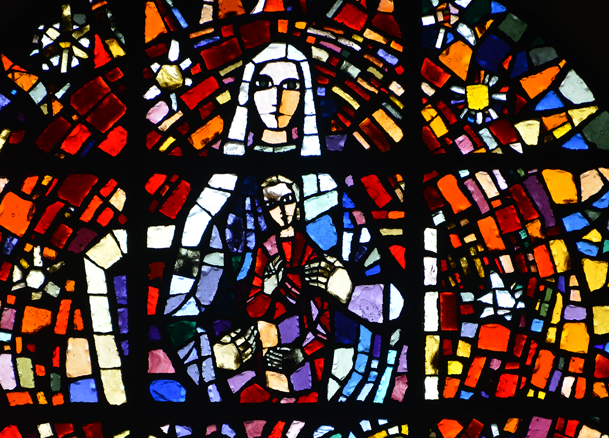 • 1954 Fenster Pfarrkirche Maria Mutter der göttlichen Gnade, WIEN - LIESING ( Rundbau, Architekt Robert Kramreiter )